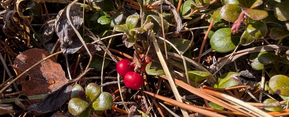 Bearberry or kinnikinnick is an evergreen ground trailing plant you can find everywhere. Its extensive root systems stabilize the often sandy, rocky, steep soils it thrives in, helping to prevent erosion. The bright red berries are an important snack for bears, birds and small mammals.